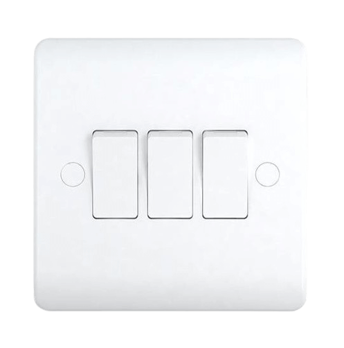 The 3 Gang 1 Way Switch allows independent control of three lighting or electrical circuits from a single location. Designed for dependable performance and daily use, it is ideal for residential and commercial electrical installations.